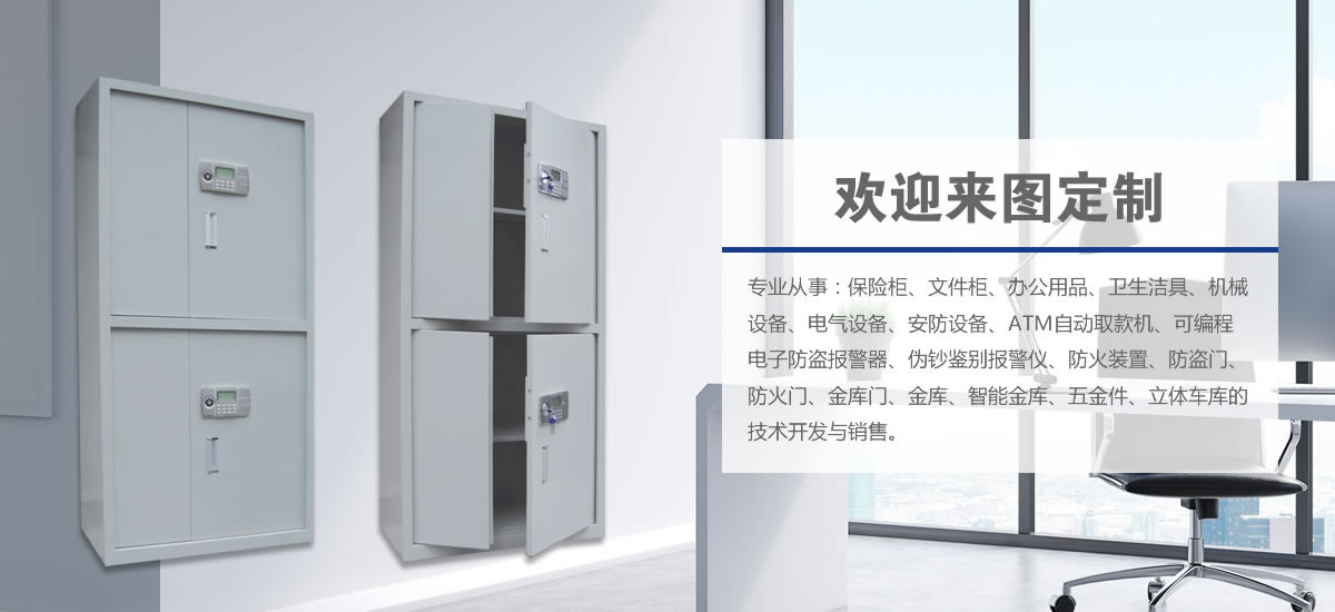 ? 專業(yè)從事:保險(xiǎn)柜、文件柜、辦公用品、衛(wèi)生潔具、機(jī)械設(shè)備、電氣設(shè)備、安防設(shè)備、ATM自動(dòng)取款機(jī)、可編程電子防盜報(bào)警器、偽鈔鑒別報(bào)警儀、防火裝置、防盜門、防火門、金庫門、金庫、智能金庫、五金件、立體車庫的技術(shù)開發(fā)與銷售
